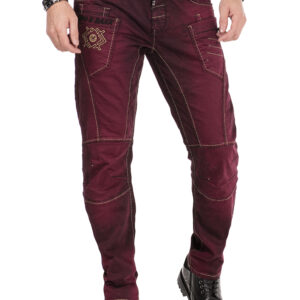 Cipo & Baxx burgundin punainen farkku. Näyttävät yksityiskohdat, joustava materiaali. Vetoketju + nappi kiinnitys. 5-taskumalli. Vyölenkit.