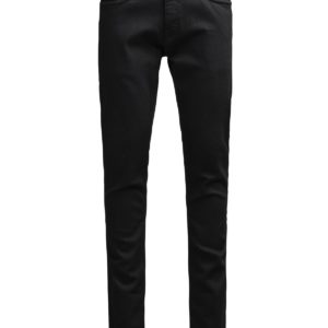 Musta slim fit farkku, vetoketju, joustava materiaali. Viisi taskua, Matala vyötärö