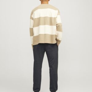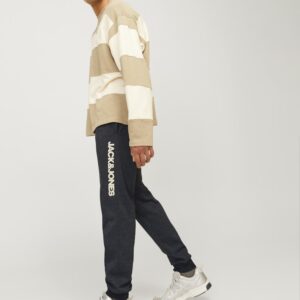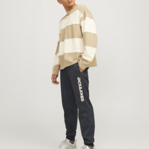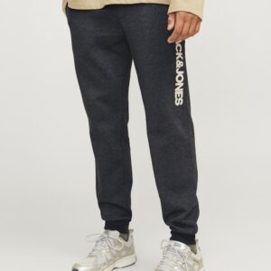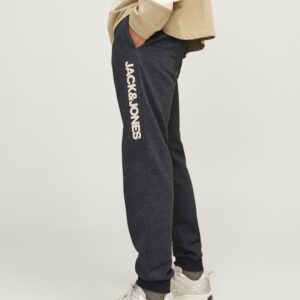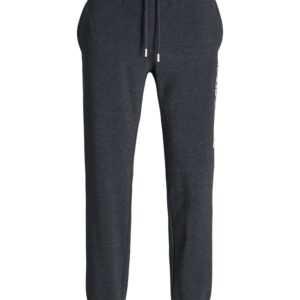 Jack & Jones tummanharmaa swetari housu. Pehmeä materiaali, jossa harjattu sisäpinta. Sivuilla taskut. Joustava kuminauha vyötärö, jossa kiristysnyöri. Lahkeissa resorit. Painettu Jack&Jones logo toisessa lahkeessa.