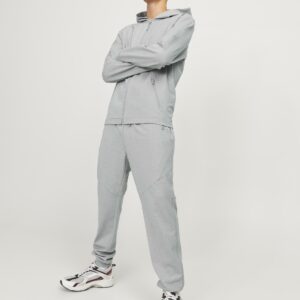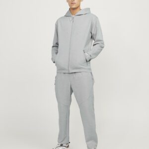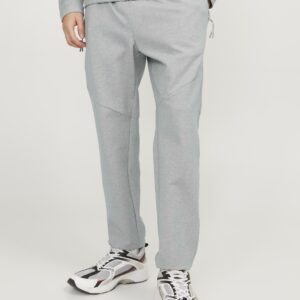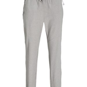 Jack&Jones vaaleanharmaan college housu. Normaali vyötärön korkeus, jossa joustava kuminauha sekä solmittavat nauhat. Vetoketjulliset taskut. Joustava materiaali. Lahkeissa resorit.