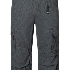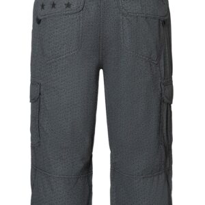 Timezone musta shortsi, jossa pieniä kuvioita. Rento pidempi malli, jossa reisitaskut joissa tarrakiinnitys. Tarralliset takataskut sekä edessä viistotaskut. Lahkeissa kiristysnyörit. Normaali vyötärön korkeus, vetoketjukiinnitys. Mukana musta vyö, jossa metallisolki. Joustamaton materiaali.
