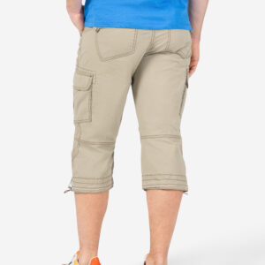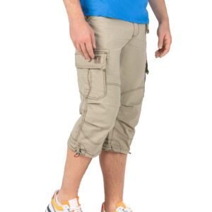 Timezone vaalean beige shortsi. Rento pidempi malli, jossa reisitaskut joissa tarrakiinnitys. Tarralliset takataskut sekä edessä viistotaskut. Lahkeissa kiristysnyörit. Normaali vyötärön korkeus, vetoketjukiinnitys. Mukana beige vyö, jossa metallisolki. Joustava materiaali.