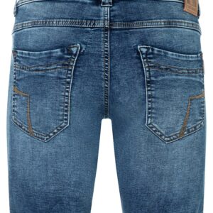 Timezone sininen farkkushortsi. Pehmeä joustava materiaali. Käännös lahkessa, jonka voi rullata auki. Taskut edessä ja takana. Vetoketju + nappikiinnitys. Kulutuspesty materiaali.