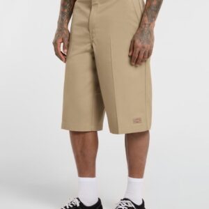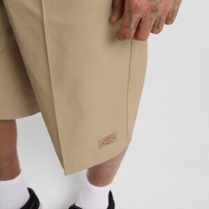 Dickies khakin värinen shortsi. Joustamaton materiaali. Rento suora malli. Viistotaskut + takataskut sekä toisella reidellä tasku. Vetoketju kiinnitys. Dickies merkki toisessa lahkeessa.