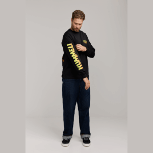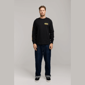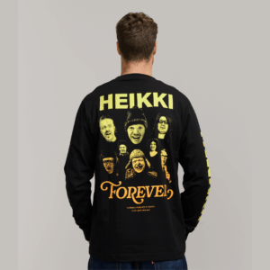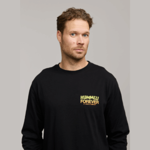 Kummeli Forever By Makia Company musta unisex pitkähihainen T-paita. Normaali mitoitus. O-pääntie, suora helma, hihansuissa resorit. Edessä pieni painettu kuva, selkäpuolella iso painettu kuva. Toisessa hihassa Kummeli teksti.