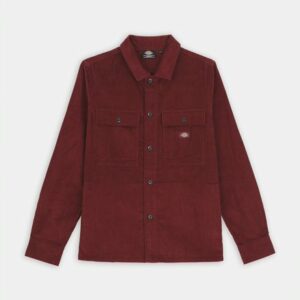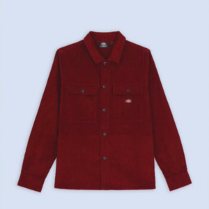 Dickies tiilenpunainen vakosamettipaita. Edessä napilliset rintataskut, joissa toisessa Dickies merkki. Napitus edessä sekä hihansuissa. Sivutaskut.