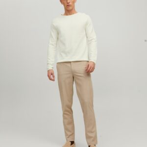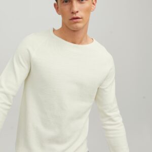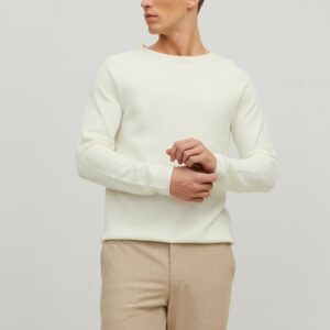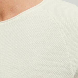 Jack&Jones luonnonvalkoinen neulepaita. O-pääntie, suora helma. Joustava eläväpintainen puuvilla materiaali. Helmassa alhaalla pieni Jack&Jones merkki.