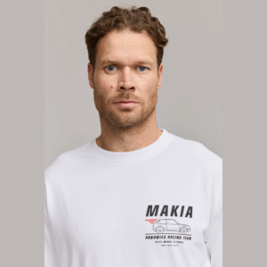 Kummeli Forever By Makia Company valkoinen unisex pitkähihainen T-paita. Normaali mitoitus. O-pääntie, suora helma, hihansuissa resorit. Edessä pieni painettu kuva, selkäpuolella iso painettu kuva. Toisessa hihassa Kummeli Forever teksti.