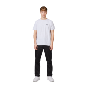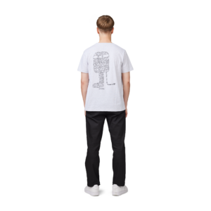 Makia Olle Eksell malliston harmaa T-paita. Unisex malli, regular istuvuus. O-pääntie. Edessä painettu musta Makia Eksell teksti. Selkäpuolella painettu kuva.