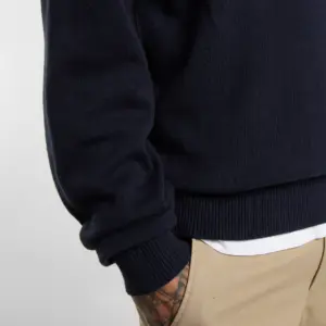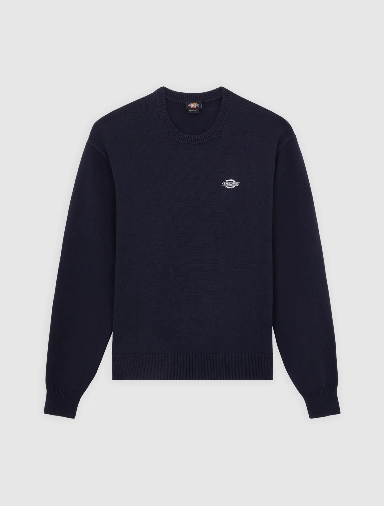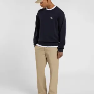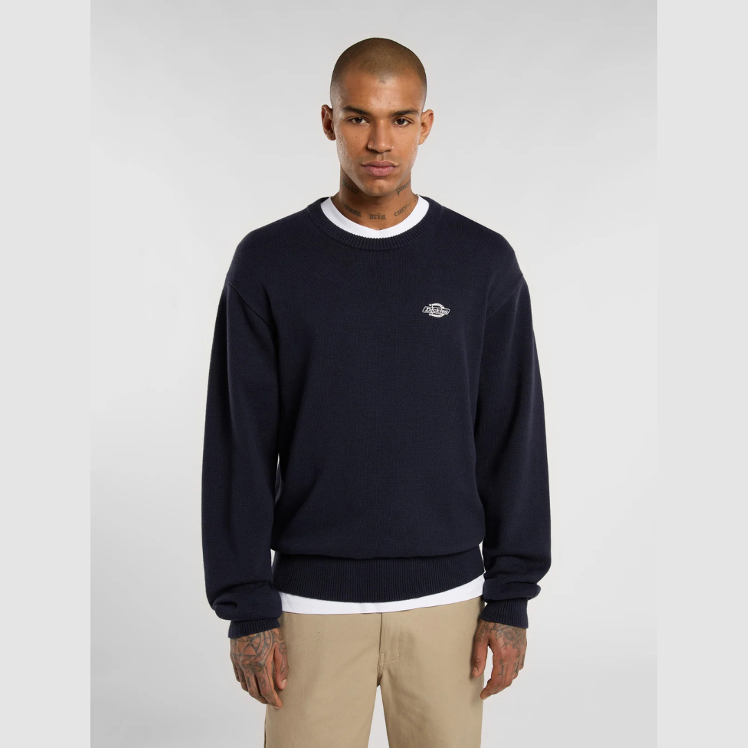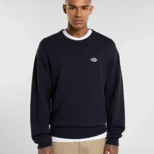 Dickies musta neulepaita. O-pääntie, hihansuissa ja helmassa resorit. Edessä pieni brodeerattu Dickies logo. Rento mitoitus.
