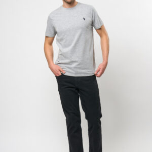 U.S. POLO ASSN. harmaa T-paita. O-pääntie, normaali mitoitus. Edessä pieni brodeerattu USPA merkki. Pehmeä materiaali.
