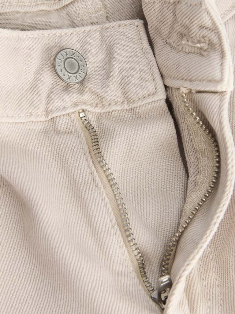 JJXX beigen väriset farkku shortsit. Normaali vyötärön korkeus. Vetoketju + nappi kiinnitys. 5-tasku malli. Joustamaton materiaali.