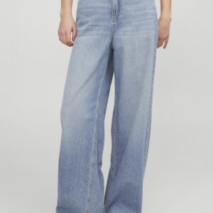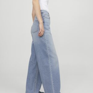 JJXX vaaleansininen kulutuspesty rento leveä farkku. Ohut laskeutuva materiaali. Korkea vyötärö, vetoketju + nappi kiinnitys. 5-taskumalli.