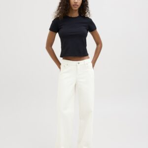 JJXX luonnonvalkoinen leveä farkku. Matala vyötärö. Vetoketju+nappi kiinnitys. 5-tasku malli. Joustamaton materiaali.