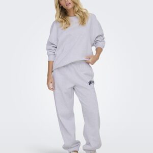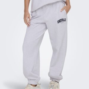 Only vaaleanharmaa swetari housu. Rento malli. Painettu teksti toisessa lahkeessa. Joustava koskea kuminauha vyötärö, taskut sivuilla. Lahkeissa resorit. Pehmeä harjattu sisäpinta.