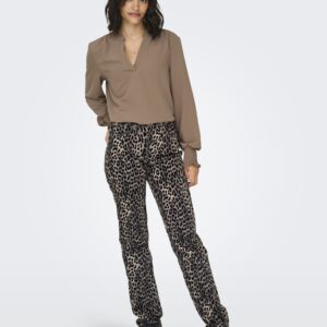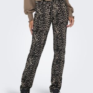 Only eläinkuosinen housu/farkku. Joustava materiaali. Korkea vyötärö, suora lahje. Vetoketju + nappi kiinnitys. 5- tasku malli. Vyölenkit.