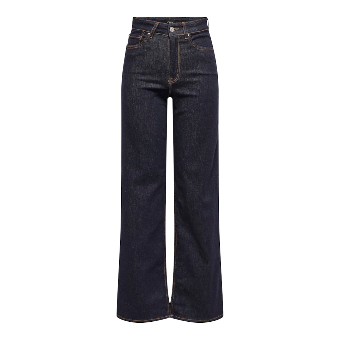 Only tummansininen kuluttamaton suora leveä farkku. Joustava materiaali. Korkea vyötärökaisteale. 5-taskumalli. Vetoketju + nappi kiinnitys.