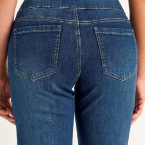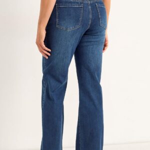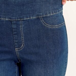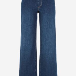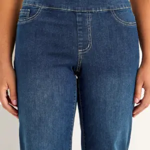 Cellbes keskisiniset kulutuspestyt farkut. Korkea joustava kuminauha vyötärö. Taskut takana. Joustava materiaali. Suora leveä lahje. Kaksi lahkeen pituutta: Lyhyt (R) n. 80 cm. Pitkä (L) n. 84 cm.