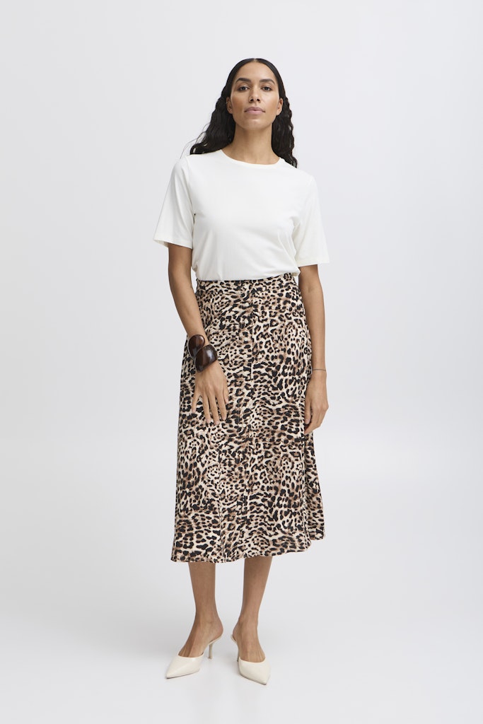 B.young eläinkuosinen midi-mittainen mekko. Edessä napitus. Laskutuva materiaali. Alaspäin levenevä helma. Joustava vyötärökaistaleen takaosa.