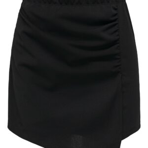 Only musta lyhyt hame. Joustava kuminauha vyötärö. Epäsymmetrinen etuosa, jossa rypytys toisella sivulla. Joustava materiaali.