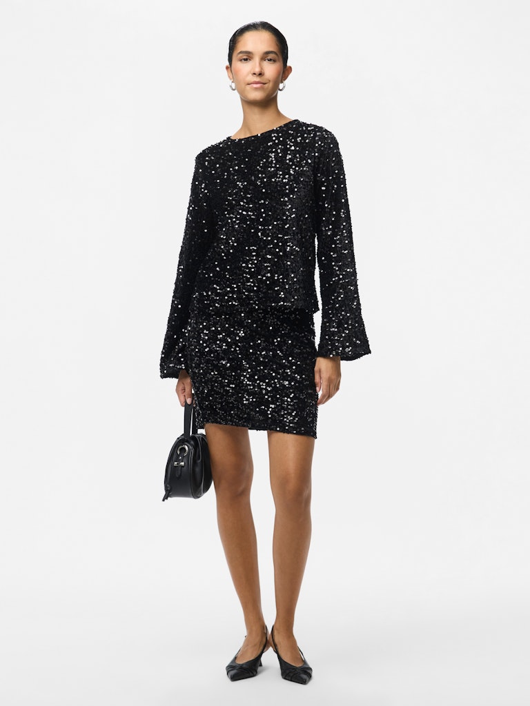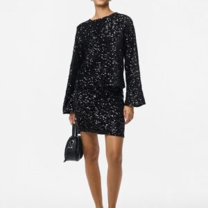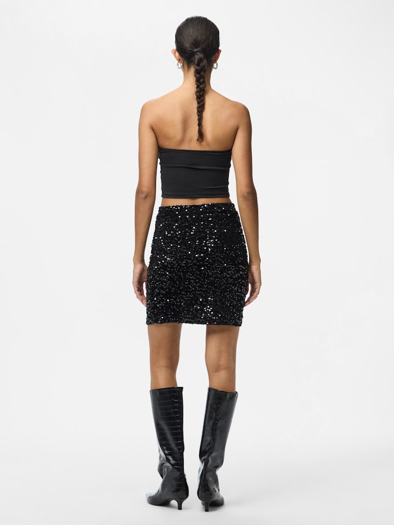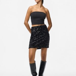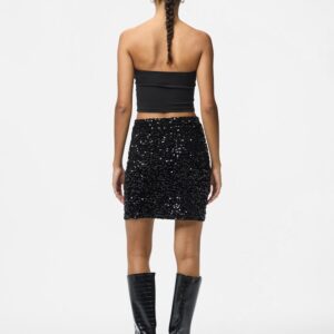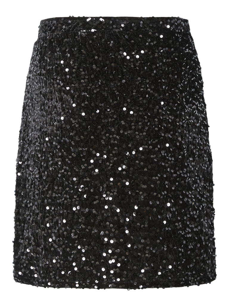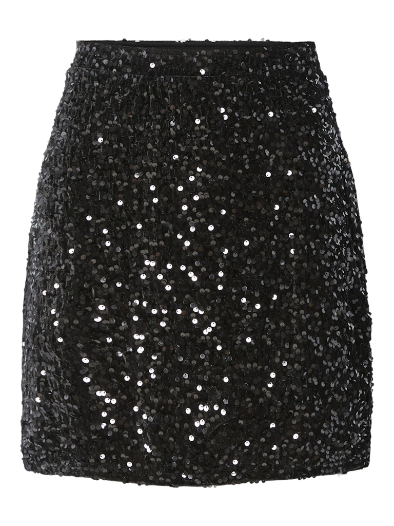 Pieces musta lyhyt paljettihame. Joustava materiaali. Korkea joustava vyötärö. Tyköistuva malli.