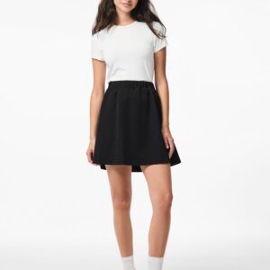 Pieces lyhyt musta korkeavyötäröinen hame. Leveä helma, joustava kuminauha vyötärö.