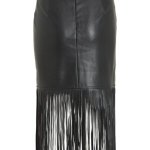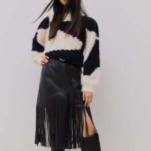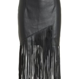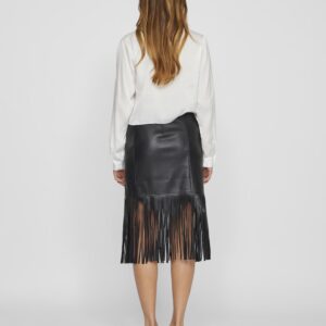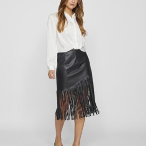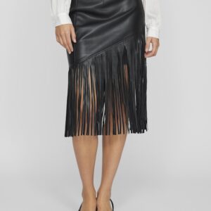 Vila musta keinonahka hame. Hapsut helmassa. Takana vetoketju. Korkea vyötärö. Joustava materiaali.