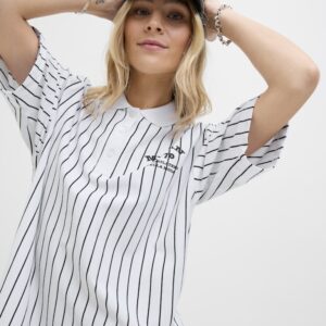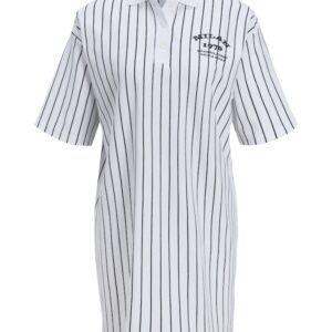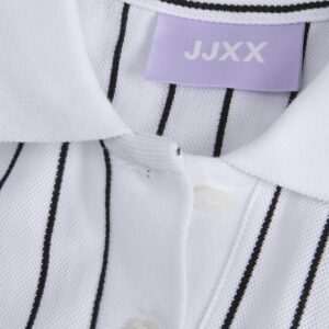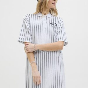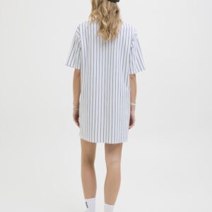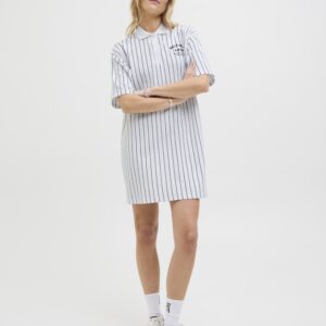 JJXX valkoinen/musta raidallinen mekko. Suora malli, joustava materiaali. Lyhyet hihat. Kaulukset ja napitus edessä.