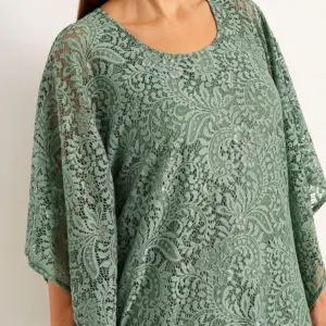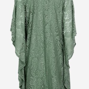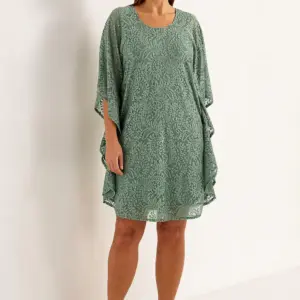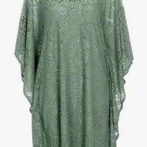 Cellbes khakin vihreä pitsimekko. Kaftaanimallinen pitsinen päällikangas,  joustava liukaspintainen vuorikangas. O-pääntie.