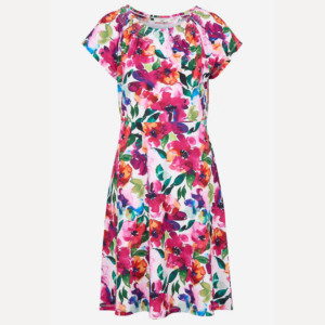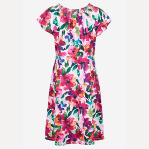 Cellbes värikäs kukkakuvioinen mekko. Joustava liukaspintainen materiaali. Lyhyet hihat, poikkileikkaus rinnan alla. Rypytys pääntiessä. Alaspäin levenevä helma.