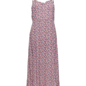 Pieces kukkakuvioinen pitkä mekko. Kapeat säädettävät olkaimet. Poikkileikkaus rinnan alla. Takaosassa joustava smokkirypytys. Pehmeä joustamaton materiaali.