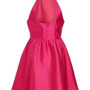 Vila pinkki lyhyt mekko. Niskalenkki malli, jossa sekäpuolella aukko sekä niskassa nappikiinnitys. Vyötäröllä poikkileikkaus. Joustamaton kiiltävä satiini materiaali. Toisella sivulla vetoketju. Yläosassa vuorikangas. Huom. tuotteen koko hieman keskimääräistä pienenpää. Jos haluat tarkempia mittoja, voit ottaa meihin yhteyttä kauppa@zippers.fi