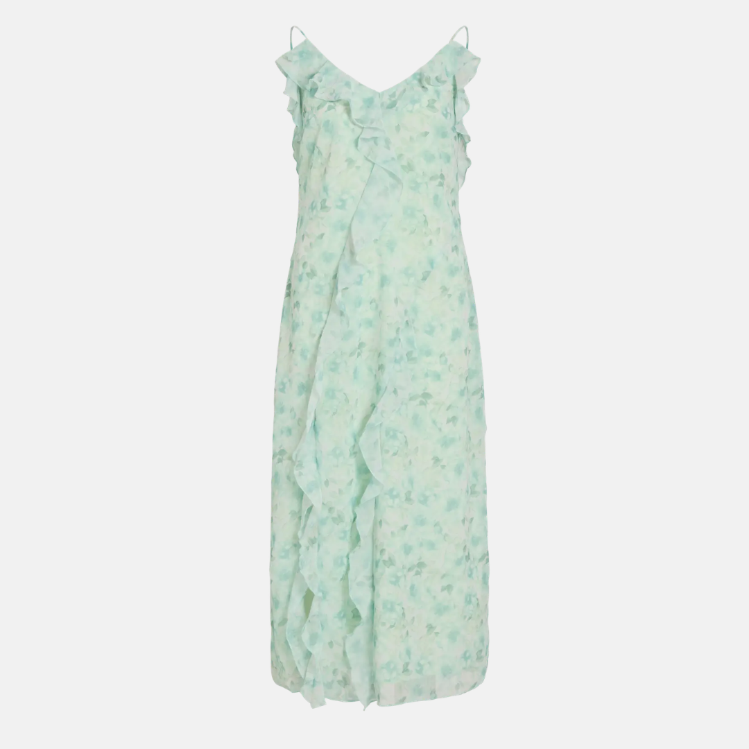 ViAriva S/L Frill Strap Midi Dress – Green Milieu