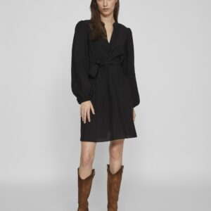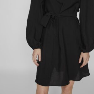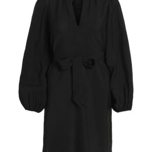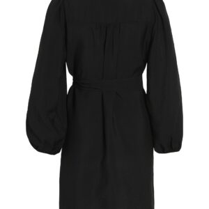 Vila musta pitkähihainen mekko. Pitkät leveät hihat, joissa hihansuissa kuminauhat. Rento istuvuus, joustamaton laskeutuva materiaali. Irtonainen solmittava vyö.