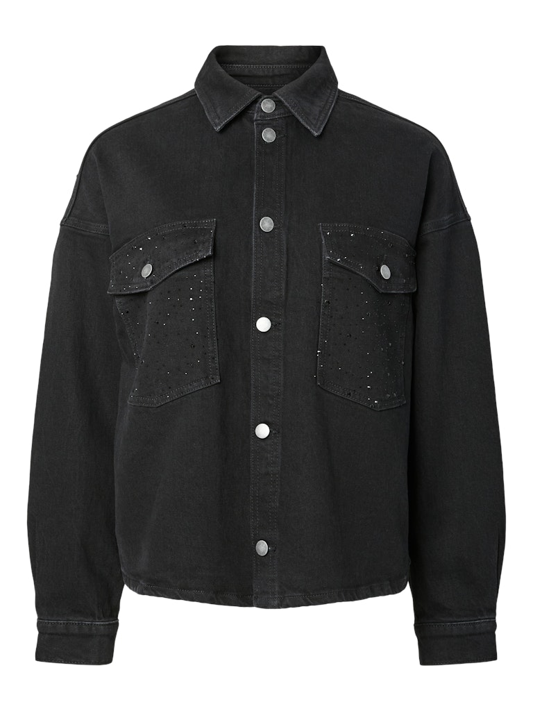 PcGabi Ls Rhinestone Denim Shirt – Black