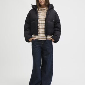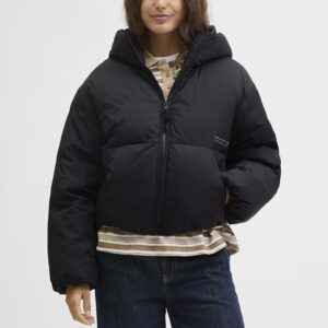 JJXX musta lyhyt hupullinen toppatakki. Muhkea vanutäyte. Taskut edessä. Vetoketju kiinnitys. Hihansuissa ja helmassa kuminauhat.