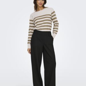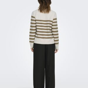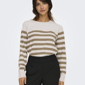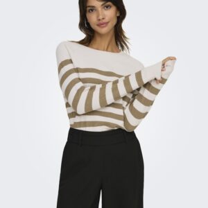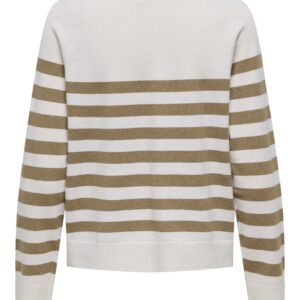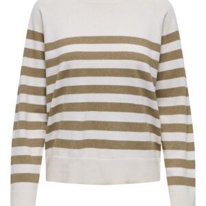 Only vaalea neulepaita, jossa vaaleanruskeita raitoja. Pehmeä ohut materiaali. Rento malli, hihansuissa ja helmassa resorit.