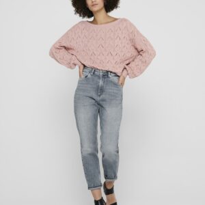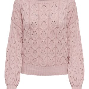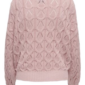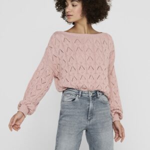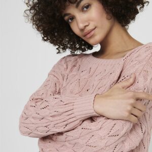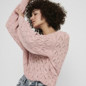 Only roosanvärinen neulepaita. Rento lyhyt malli. O-pääntie, hihansuissa ja helmassa resorit. Eläväpintainen kudottu joustava materiaali.