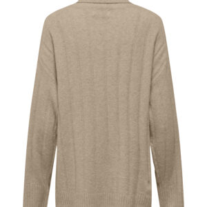 Only beigen värinen korkeakauluksinen neulepaita. Ohut pehmeä joustava materiaali. Rento malli. Hihansuissa ja helmassa resorit.