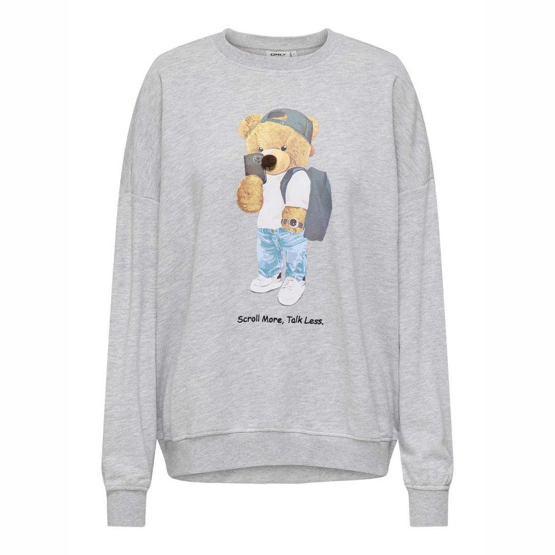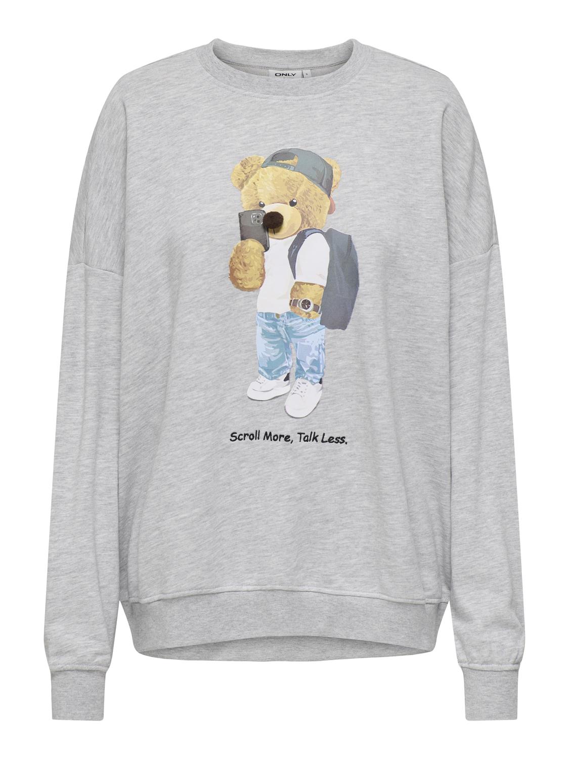 OnlTeddy L/S O-neck Print Sweat – Light Grey