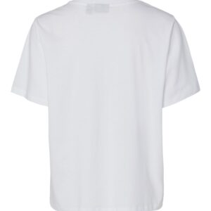 Pieces valkoinen T-paita. Rento malli, O-pääntie. Edessä painettu Jaws kuva.