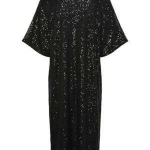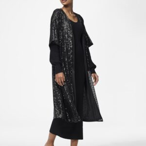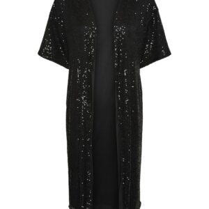 Pieces musta pitkä paljetti kimono. Ohut joustava vuorikangas. Rento malli, lyhyet leveät hihat. Avoin malli, ei kiinnitystä.