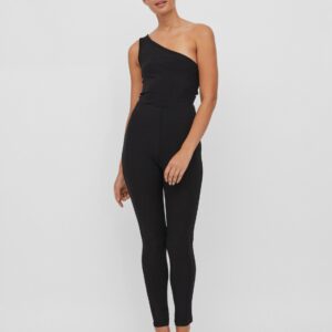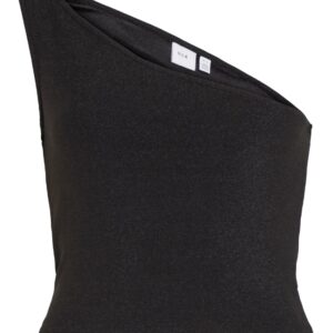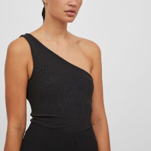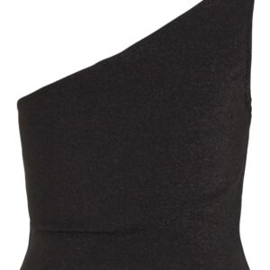 Vila yksiolkaiminen musta toppi. Kiiltävä pintainen joustava materiaali. Lyhyt tyköistuva malli.
