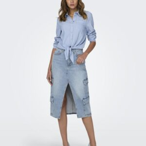 OnlPosey HW Midi Cargo DNM Skirt – Light Blue Denim