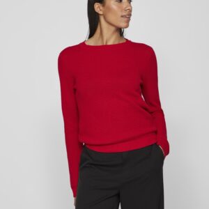 ViDalo O-neck L/S Knit Top- Barbados Cherry